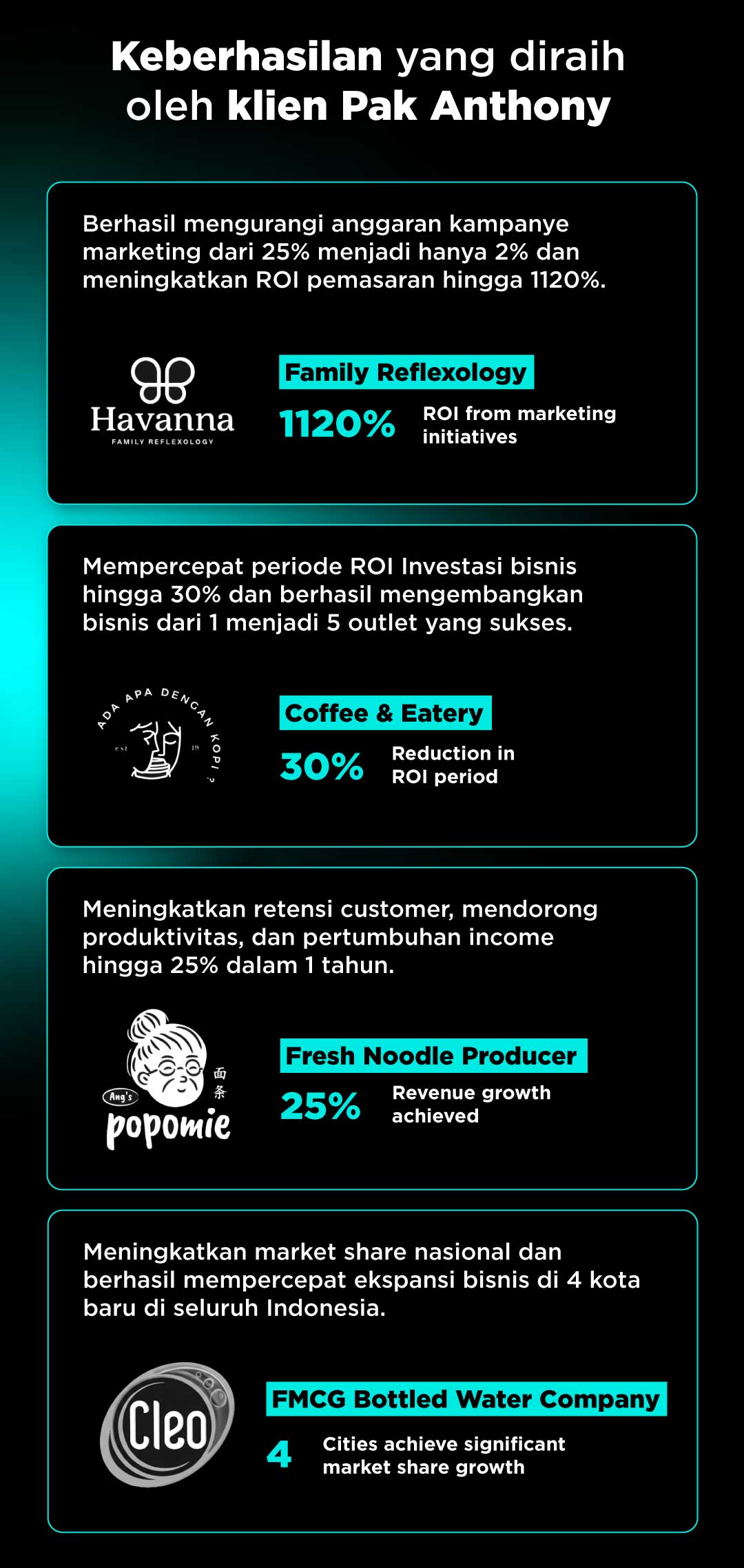 Sejak tahun 2008, melalui perusahaan yang dibangunnya, yakni BrandPartner Indonesia, Anthony memulai perjalanannya sebagai Strategic Brand & Marketing Consultant yang hingga kini telah dipercaya oleh lebih dari 350+ perusahaan nasional maupun multinasional di seluruh kawasan Asia, termasuk beberapa di antaranya XL Axiata, Maspion Group, Tanrise Property, Intiland, Aqua, dan berbagai perusahaan lainnya. Eksistensinya pun telah diakui oleh puluhan media massa di seluruh Indonesia, termasuk Kompas, Jawa Pos, Marketing Magazine, dan lain-lain. Ia kerap diundang untuk menjadi narasumber dan pembicara di banyak konferensi dan instansi untuk membagikan pengalamannya terkait strategi branding, pemasaran, maupun bisnis secara umumnya.