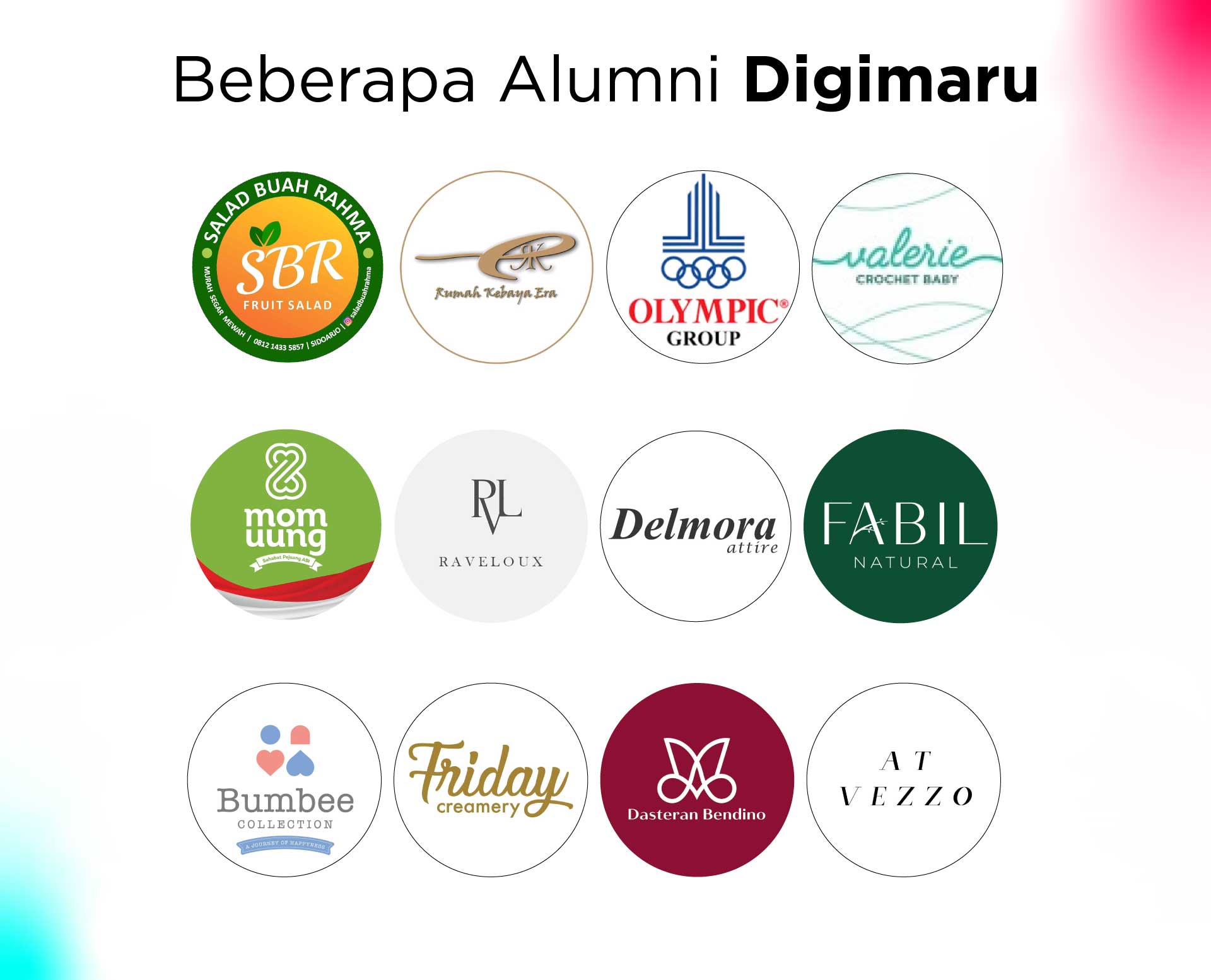 Setelah join di Digimaru, saya jadi tahu kalo Branding itu penting banget karena sangat membantu untuk mengembangkan bisnis kita. Selain itu, saya jadi lebih bisa memahami audience dan bisa bikin konten yang tepat langsung ke target market. Terima kasih Digimaru